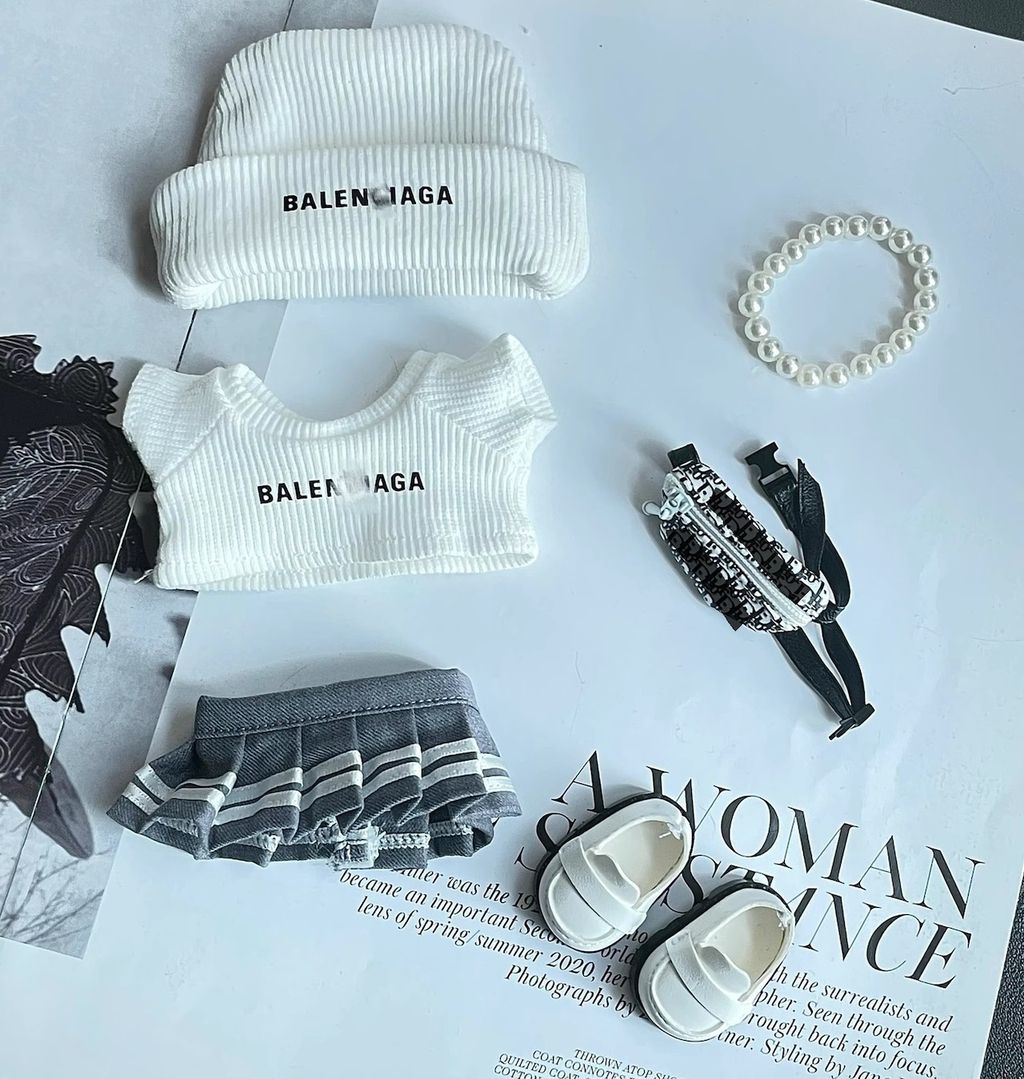 ニットトップス+スカート+帽子+バックパック+シューズ+パールネックレス Labubu 1〜3代対応 おしゃれコーデ 6点セット
