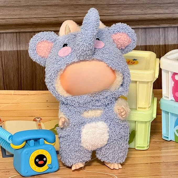 For Labubu 服 ぬいぐるみ用 ラブブ1代目 2代目 3代目対応 17cm人形の服 帽子 Tシャツ ズボン ドレス セーター セット かわいい コスチューム 着せ替え フィッシャーマンズハット ジーンズ 人形ベビー服 綿人形の服 DIY アクセサリー 衣装のみ (象)