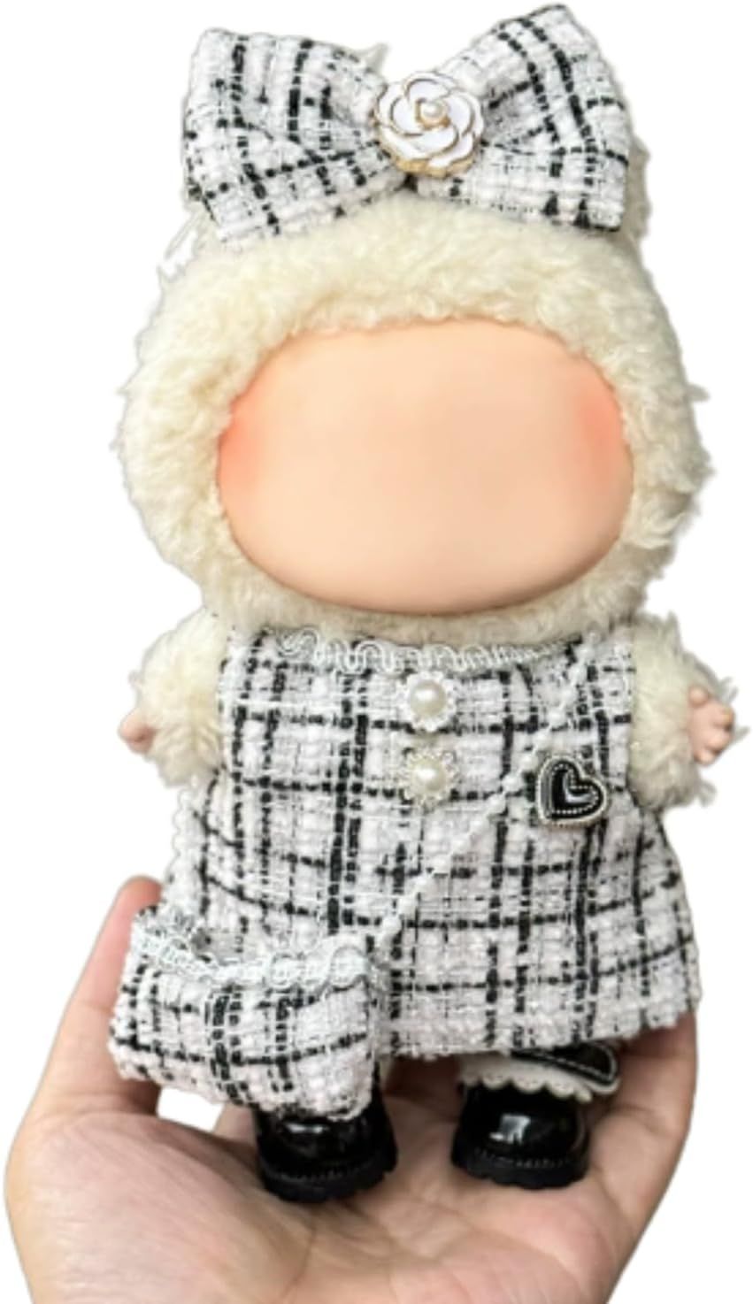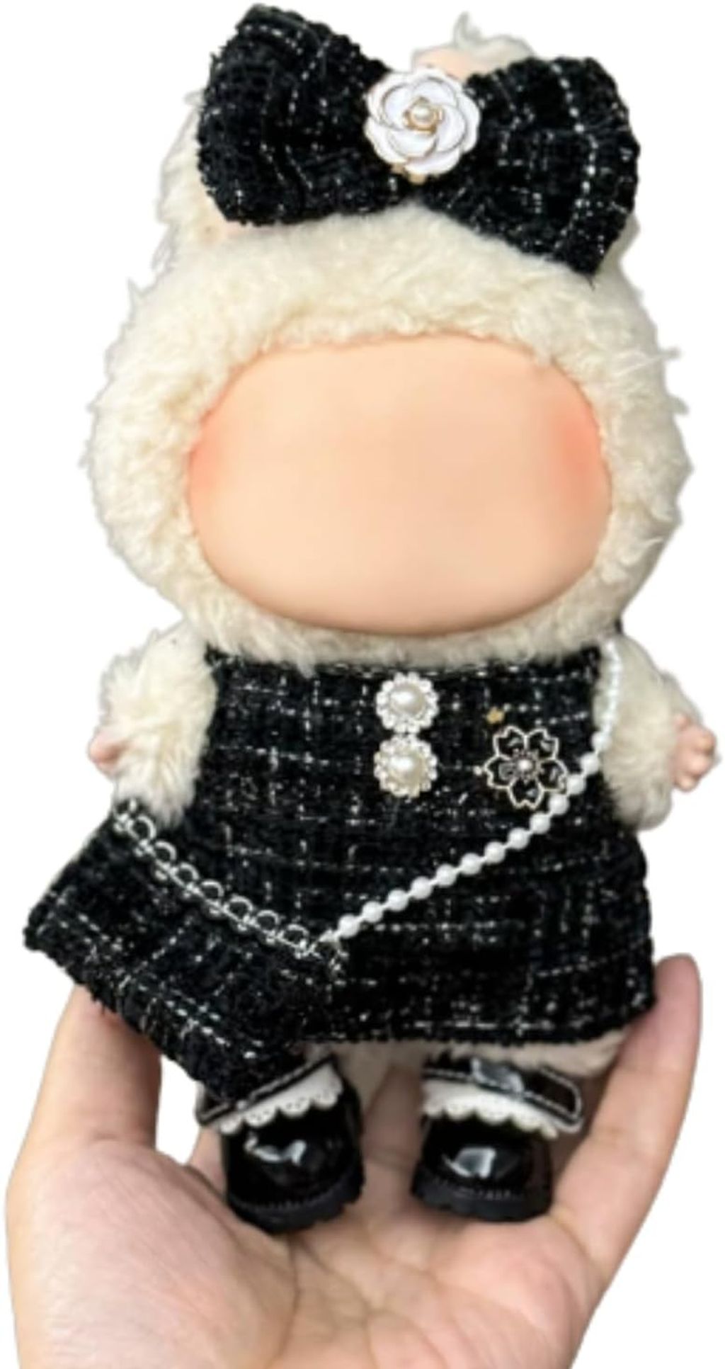 17cm用 着せ替え服 可愛い ぬい服 ぬいぐるみ服 服のみ 17cm ぬいぐるみ 人形の服 ドール服 ぬいぐるみ着せ替え かわいい labubuとの互換性あり コスチューム(リボン+バッグ+服) (ブラック)